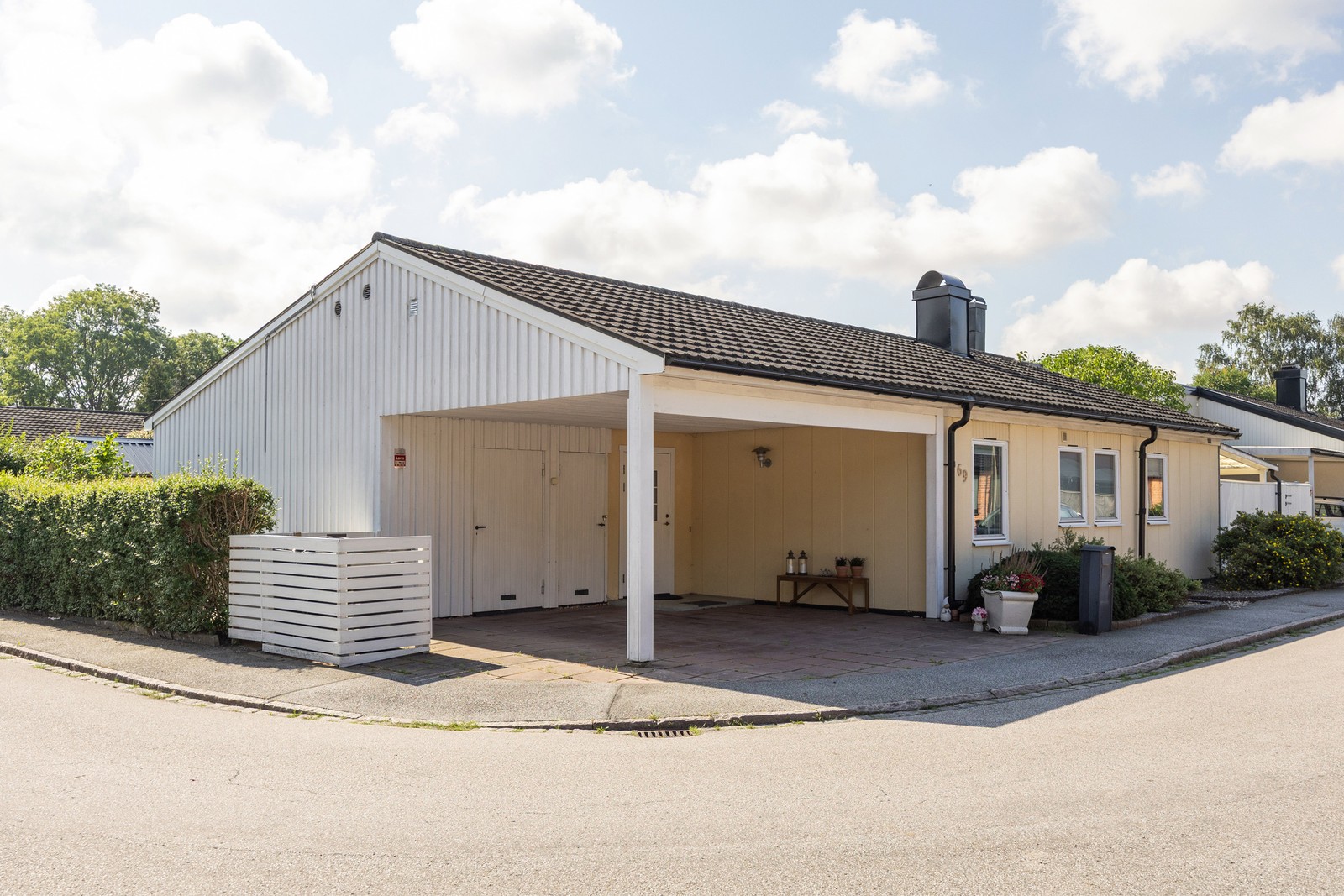 Charmigt familjehem på hörntomt med grönskande trädgård och solceller