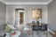 Ljusgråmålade väggar och fiskbensparkett. Platsbyggda garderober.