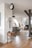 Luftig hall med gott om svängrum och avhängningsmöjligheter. Terazzoklinker och gråmålade väggar.