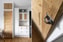 Välkomnande hall med bra förvaring i garderob. Brädgolv tillsammans med ljusa väggar.