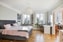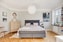 Sovrummet är rofyllt med generöst ljusinsläpp från de djupa fönsternischerna. Fiskbensparketten fortsätter här och ger en elegant känsla, medan kulturglasen och stenfönsterbrädena förstärker hemkänslan. Rummet rymmer enkelt dubbelsäng, garderob eller byrå, och en arbetsplats för studier eller hemmakontor, allt utan att kompromissa med rymd eller luft.