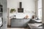 Köket är stilrent från Ballingslöv med svarta beslag och svartlaserad träbänkskiva som blir en fin kontrast till de vitputsade väggarna. Här finns gott om arbetsyta och en barliknande del där man kan sitta för långa helgfrukostar eller när gästerna är på besök. God förvaring i underskåp och platsbyggda hyllplan. Vackert fönster skänker fint ljus in. Modern maskinpark med induktionshäll, varmluftsugn, mikrovågsugn, diskmaskin, fläkt, vask samt kyl och frys.