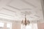 Ljust och vackert rum med ekparkett och målade väggar i vitt och beige. I taket löper vackra stuckaturer.