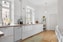 Det nyrenoverade köket står i centrum och är noggrant utformat för att harmoniera med bostadens sekelskiftescharm. Med vita väggar, originalt plankgolv, vita köksluckor, vitt kakel och en bänkskiva i fanerat trä skapas en ljus och tidlös helhet som passar perfekt till hemmet. De stora fönstren vetter mot den lummiga innergården och fyller rummet med ett mjukt dagsljus som förstärker kökets varma och inbjudande karaktär. Kombinationen av klassiska material och modern funktion gör köket både vackert och praktiskt