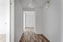 Till vänster om hallen finner vi lägenhetens ena sovrum. På golvet vilar laminat och väggarna är målade i vit färg.