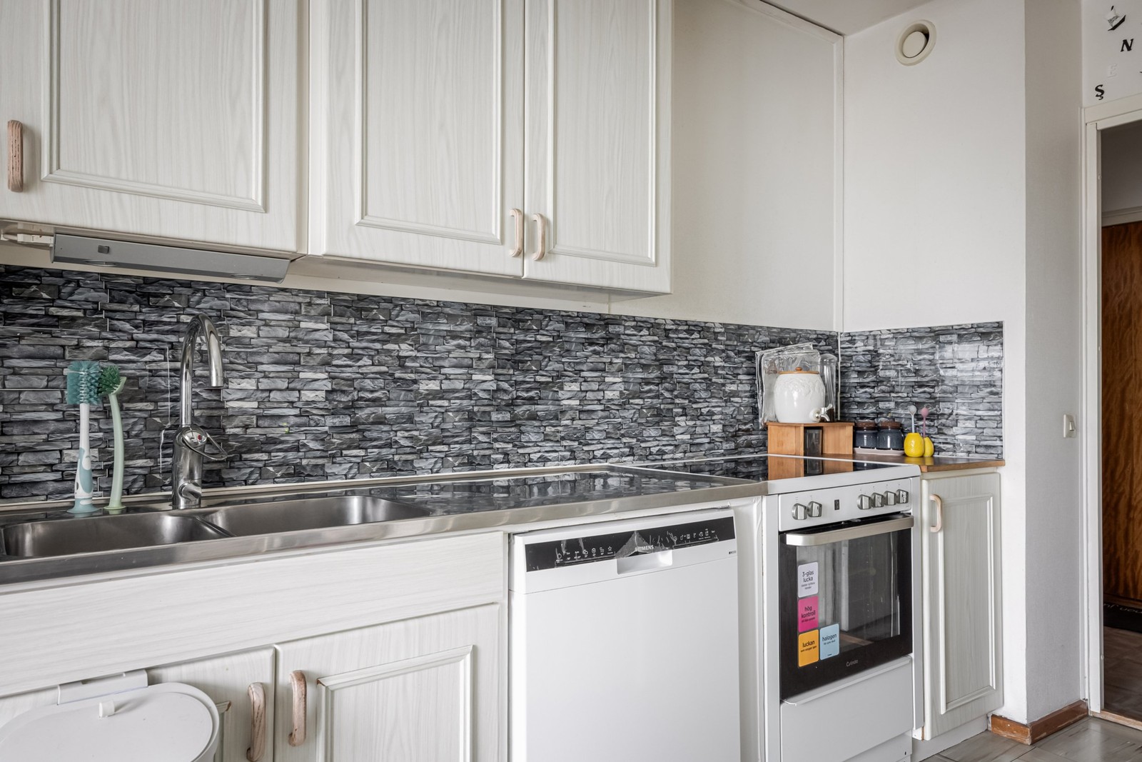 In i hemmets hjärta där det är en fröjd att laga mat då säljaren har använt kvadratmetern väl. Här finns gott om förvaring med över och underskåp. Utrustat med spis, kyl/frys, ugn och diskmaskin.