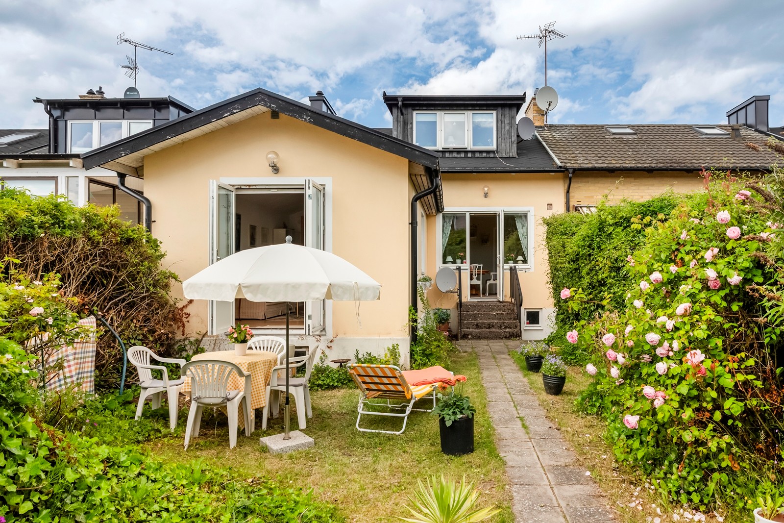 Charmigt radhus med härligt trädgård på eftertraktade Rosenvång