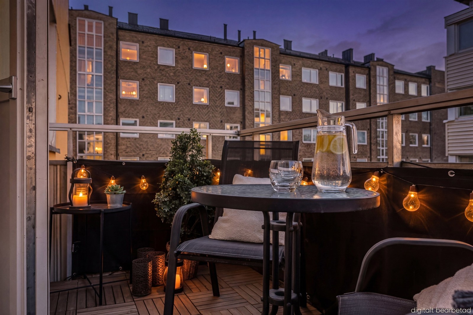 Balkong med eftermiddags & kvällssol, sydväst. Plats för 2-4 personer.