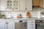Köket har grått målade luckor och snygga läderdetaljer till handtag. Det vita kaklet med svarta fogar möter sedan snyggt den grå bänkskivan. Här lagar du mat på induktionshäll och i varmluftsugn från Whirlpool. Diskmaskinen från Siemens går i samma rostfria stål. Kolfilterfläkt och kyl och frys finns också. Gott om plats för sällskap om 4-6 sittande personer.