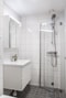 Badrummet är nyligen renoverat 2025 och håller en modern standard med kakel och klinker i tidlösa materialval.