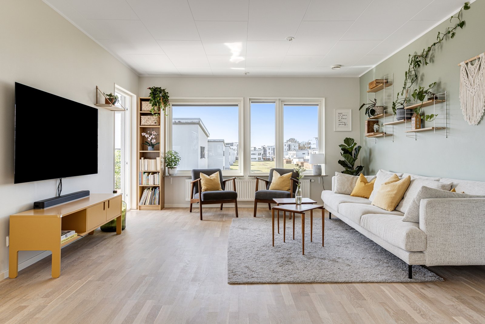 Äntligen finns en trea i huset med fri utsikt över gröningen. Ljuset, grönskan och lugnet ramar in detta fina hem. Helt utan insyn och med sobra färger kombinerat med hög standard bjuder in till ett hem som höjer sig över mängden.
