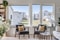 Den öppna planlösningen mot vardagsrummet skapar en generös yta och ljusflödet är fantastiskt. Grön fondvägg ramar in en plats för soffa och fåtöljer. Under den varma årstiden står dörren på glänt mot den stora och privata balkongen som breder ut sig på husets hörna.
