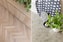 Slipat och behandlat befintlig fiskbensparkett med vitpigmenterad hårdvaxolja.