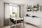 Stilspråket är genomgående samtida med enhetlig ljus ekparkett i samtliga rum, målade väggar i vita och gröna toner samt mörk akustikpanel i både sovrum och hall. Köket har en smakfull interiör med mustigt mörkbruna luckor, vit bänkskiva och metrokakel i halvförband ovan. Här ryms fyra personer i matplatsen vid fönstret. Badrummet är kaklat i klassiskt svart och vitt. Som en solid grund vilar det tidstypiska såsom generös takhöjd, originalfönster med tidstypiska beslag, fönsterbänkar av sten och inbyggda skåp i hall.