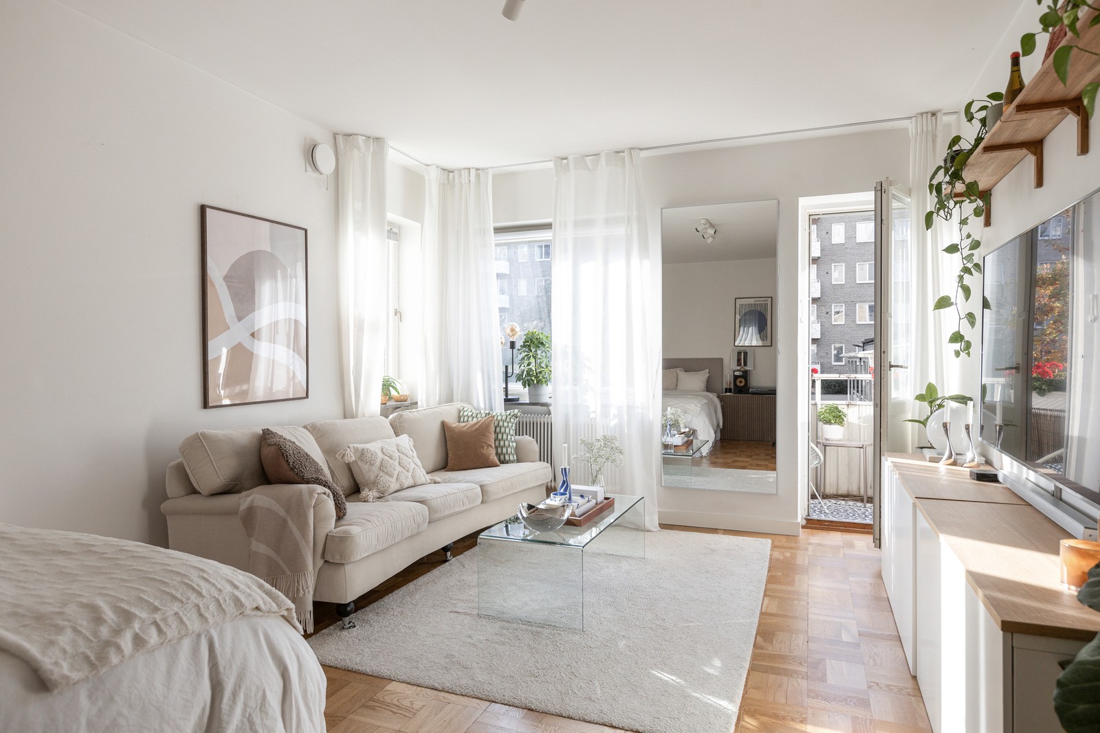 Rymlig enrummare med gårdsvänd balkong i västerläge - Nära parker och hav!
