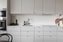 Ytan i köket är så pass tilltagen att rummet blir så mycket mer än bara ett kök. Här umgås man, till fest blir det en mingelplats och under vardagen blir köket en naturlig plats för måltider. Två stora fönsterpartier som släpper in rikligt med ljus. Stora arbetsytor kombineras med beiga, släta luckor. Bänskiva i ljus Silestone med fullsize kyl, frys och skafferi som är integrerat. Integrerad diskmaskin, samt mikro och ugn i midjehöjd. Induktionshäll och fläkt. Matplats för ca 6 personer.