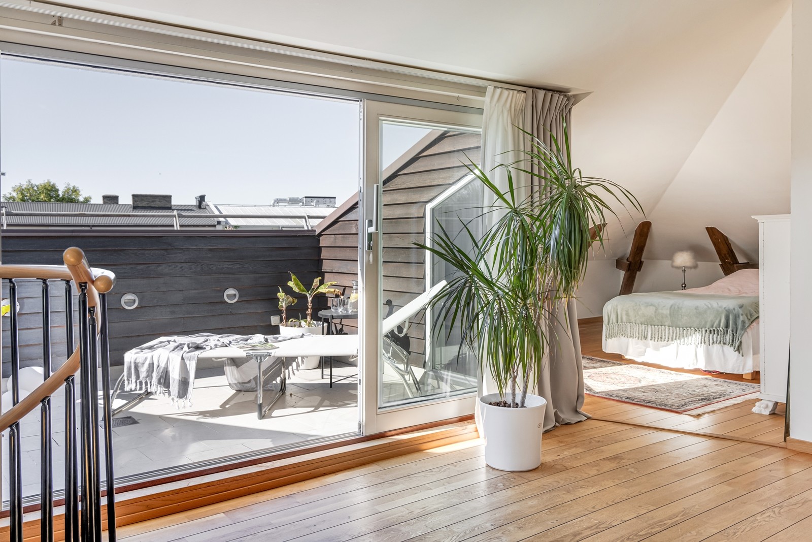 Två plan, tre balkonger, takterrass och villakänsla mitt i Slottsstaden
