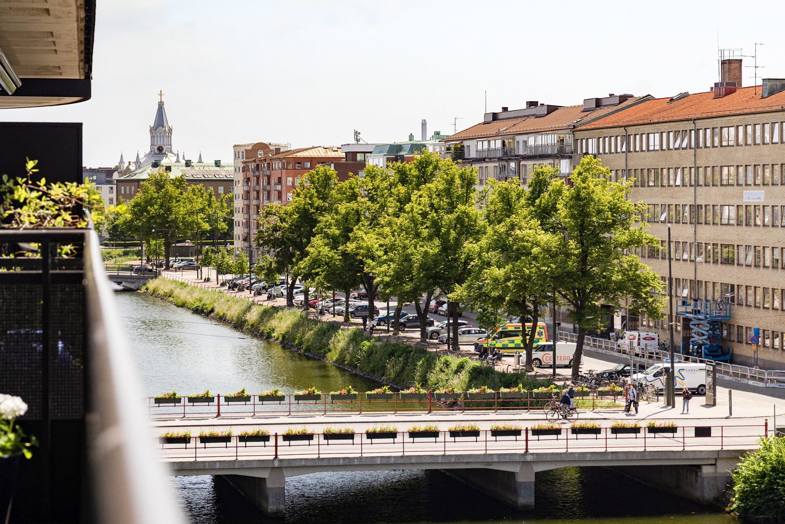 Det finns över fem kilometer kanaler i centrala Malmö idag och utmed dessa uppskattade vattenvägar finns vägar, parker, kontor och bostadshus. Malmö fick sitt stadsbrev år 1275 och redan då hade bebyggelsen växt utmed vattnet i flera århundraden. Drottningtorget, som uppfördes på 1800-talet, ligger vid det som var dåtidens shoppingområde, ”torggatan” Adelgatan. Nu för tiden hålls här den populära Bondens Marknad där närproducerade varor lyfts fram. Vid torget finns en boulebar samt en populär glassbutik där alla varianter av glass och sorbet tillverkas för hand. Längre österut fanns Slussen och där ligger nu flerfamiljshus uppförda från början av 1900-talet och framåt.