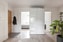 Helkaklat badrum med spotlights, handukstork, dusch, handfat och skåp för förvaring. Badummet renoverades 2020 och kvalitetsdokument finns.