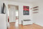 Hall - Genom en säkerhetsdörr tar vi oss in i bostaden i en praktisk hall med en inbyggd garderob. Här ligger lackat brädgolv och vitmålade väggar.