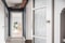 Välkomnande hall med vitmålat plankgolv.