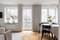 Det stora rummet är smart disponerat i tre naturliga sektioner – en självklar plats för matbord, en trivsam soffhörna och en sovdel. Stora fönsterpartier och fransk balkong släpper in rikligt med dagsljus och ger bostaden en luftig och trivsam atmosfär.