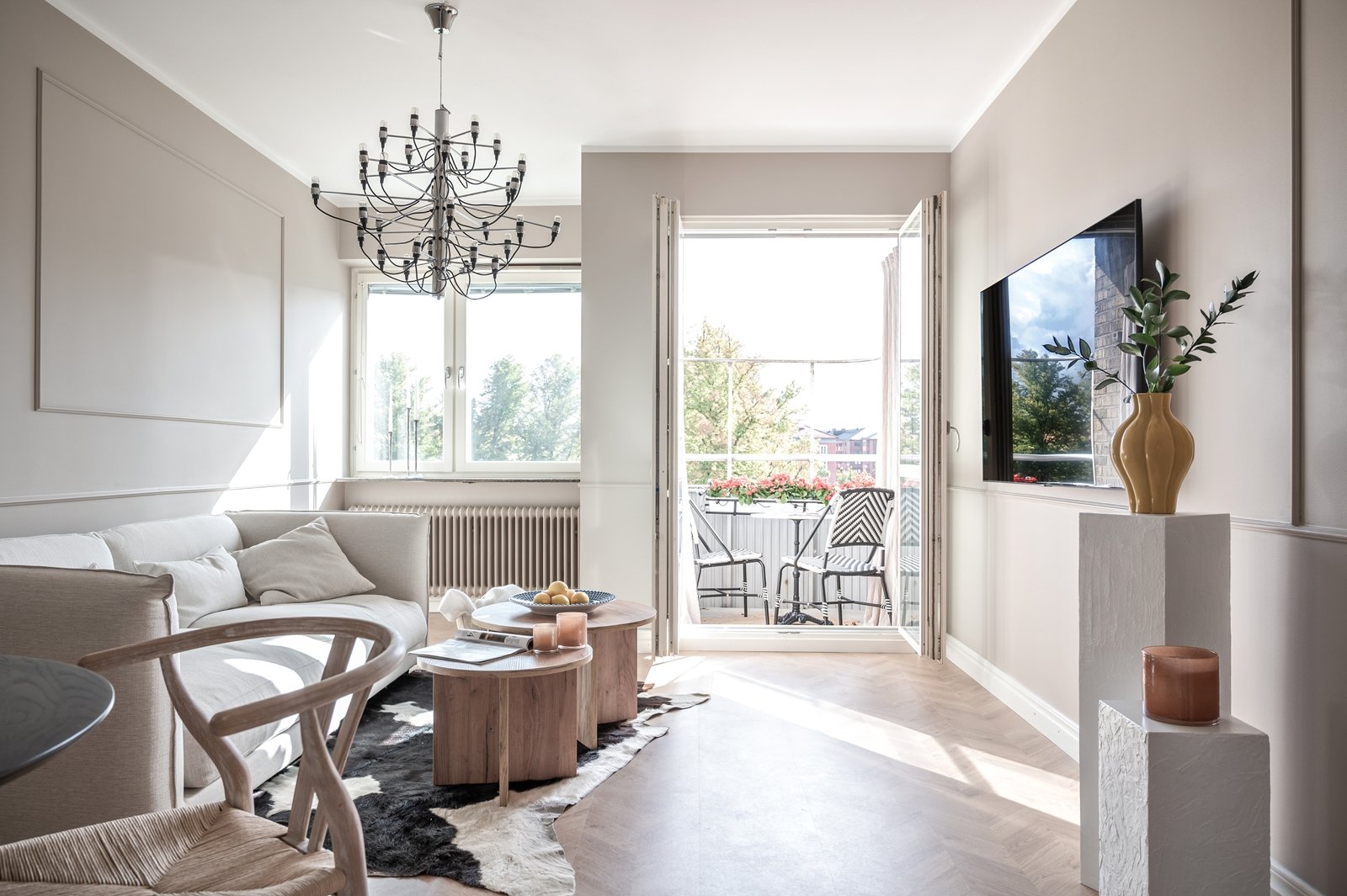 Lägenheten är smart planerad med öppna sociala ytor, ett nyrenoverat kök i modern design, påkostat badrum och ett mysigt sovrum med charmig fiskbensparkett. Från vardagsrummet kliver du rakt ut på den trevliga balkongen – perfekt för sena kvällar med vänner eller en lugn morgonkaffe.
