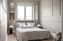 Fiskbensmönstrat golv och ljusa väggar. Rummet har fint ljusinsläpp, plats för garderob och dubbelsäng.