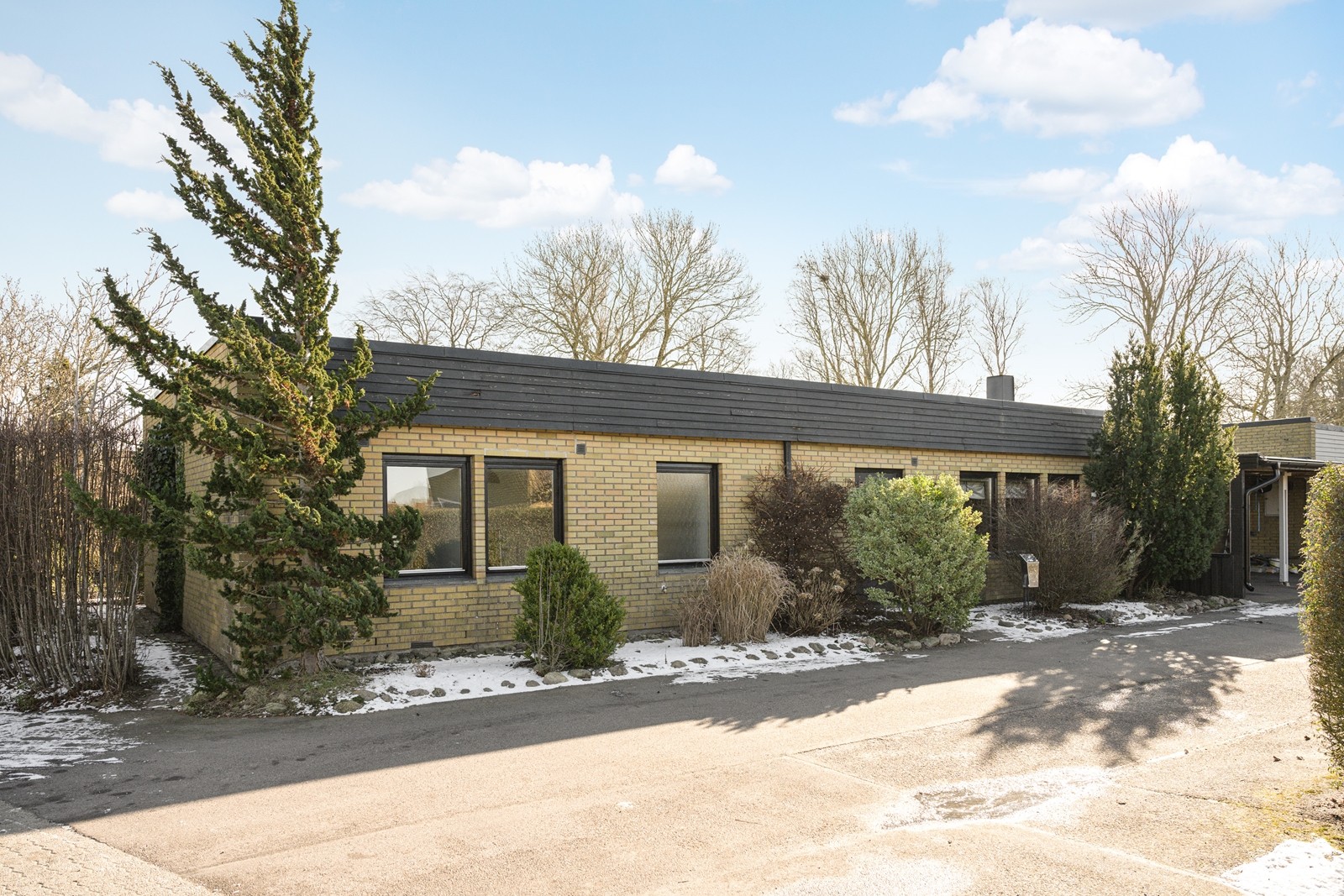 Välplanerad 1-plansvilla med 3 sovrum, hörntomt, garage och nära skola, butik och kollektivtrafik.