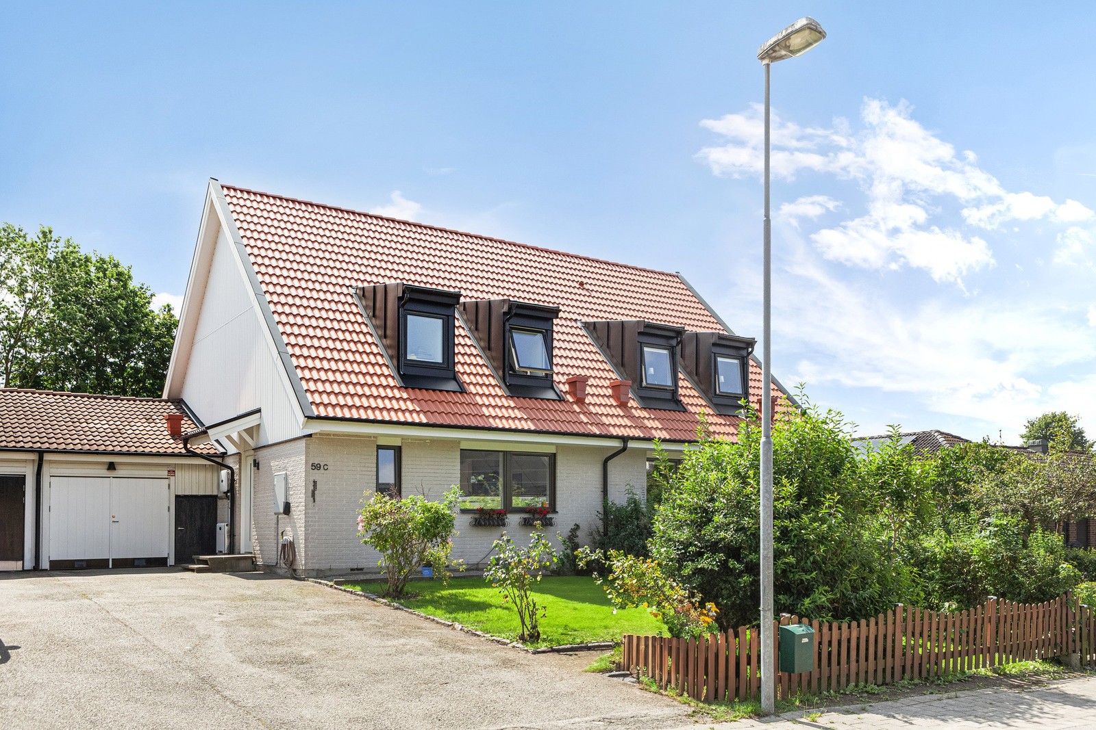 Trädgården i bästa söderläge är lummig med uppväxta träd och buskar och samtidigt lättskött. Altanen bjuder in till många sköna stunder mot varm husvägg medans framsidan ger behaglig morgonsol. Väl tilltagen uppfart samt garage fulländar detta boende.