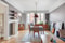 Det vackra parkettgolvet löper vidare in vid matplatsen och vardagsrummet. Här finns plats för matbord, soffgrupp och annat möblemang om så önskas. Stora fönsterpartier samt utgång till balkong finns här. Väggarna är målade i härlig nyans.