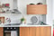 KÖK - Ett modernt och smakfullt kök med luckor i trälook från Picky Living, vit bänkskiva och vitt kakel som stänkskydd. Parkettgolv och vita väggar bidrar till en ljus atmosfär. Köket är välutrustat med spis och varmluftsugn (IKEA 2024), fläkt från Electrolux, diskmaskin från Bosch samt kyl och frys (IKEA 2023), och erbjuder gott om arbetsyta och förvaring.