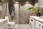 Helkaklat badrum i lyxigt utförande. Ljusgrått klinker på golv, grått kakel på väggarna samt gråmålat tak. Utrustat med handdukstork, vägghängd toalett, handfat, dusch, badrumsskåp, tvättmaskin och torktumlare.