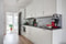 Innanför entrén får vi ett fullutrustat vitt kök med gott om förvaring och arbetsyta – perfekt för matlagning och umgänge. I öppen planlösning intill får vi vardagsrummet med matgrupp och soffmöblemang, vilket gör rummet socialt och inbjudande. Sovrummet är smart placerad för att skapa en avskild och rofylld sovplats med väggar målade i beige och till klädförvaring har en garderobsvägg fyra stycken garderober. Badrummet imponerar med sin generösa storlek, grått klinkergolv med vita väggar och bekvämligheter som tvättmaskin, golvvärme och handduskstork.