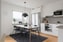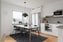 Matplatsen är placerad i direkt anslutning till köket, med utrymme för ett större matbord där familj och vänner kan samlas. De generösa fönsterpartierna släpper in rikligt med dagsljus och bidrar till en ljus och luftig atmosfär. Den öppna ytan gör det enkelt att röra sig mellan kök och matplats, vilket skapar en social och funktionell helhet.