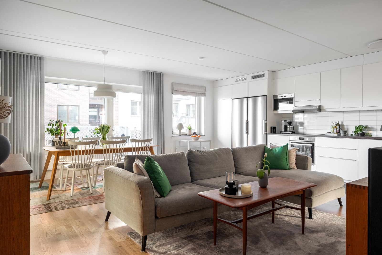 *I avgiften ingår värme, kallvatten, bilpool och bostadsrättstillägg. Ett obligatoriskt tillägg om 180 kr/månad tillkommer för TV, bredband och telefoni. El (och varmvatten efter våren 2024) tillkommer efter egen förbrukning.