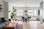 Här möts design och funktion i en öppen planlösning där vardagsrummet erbjuder gott om plats för både umgänge och avkoppling. Köket ligger i harmonisk anslutning – delvis avskilt men ändå socialt – och är fullt utrustat med moderna vitvaror. De gröna köksluckorna kombineras med bänkskiva och stänkskydd i microcement, vilket ger ett trendigt och enhetligt intryck.