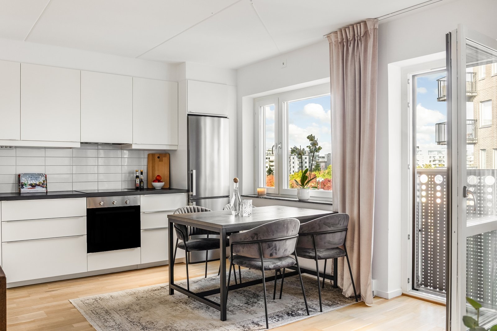 Välkommen till ett hem som genomsyras av ljus, rymd och en varm atmosfär. Här bor du bekvämt med hiss från markplan, i en lägenhet som bjuder in till både social samvaro och avkopplande stunder.