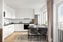 Köket är elegant inrett med släta vita luckor, mörk laminatbänkskiva och komplett maskinpark – kyl, frys, ugn, spishäll, integrerad diskmaskin samt inbyggd mikro. Här kan du laga middagar i gott sällskap samtidigt som ljuset strömmar in genom den franska balkongen med utsikt mot den grönskande parken.
