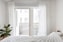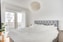 Ljust och luftigt sovrum med ett stort glasparti med utgång till balkong. Även här återkommer vitmålade väggar och ekparkett. Balkongen har en bra yta som kan möbleras med en soffgrupp eller matbord. Det skyddade läget under tak gör att den kan nyttjas även när vädret inte är felfritt. Här har du fin utsikt över innergården med lekplats och kvarterets moderna bebyggelse.