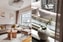 KÖK- Stilrent kök med vita luckor och svart kakel ovan den mörka bänkskivan. Här bra förvaring och bekväma arbetsytor.
