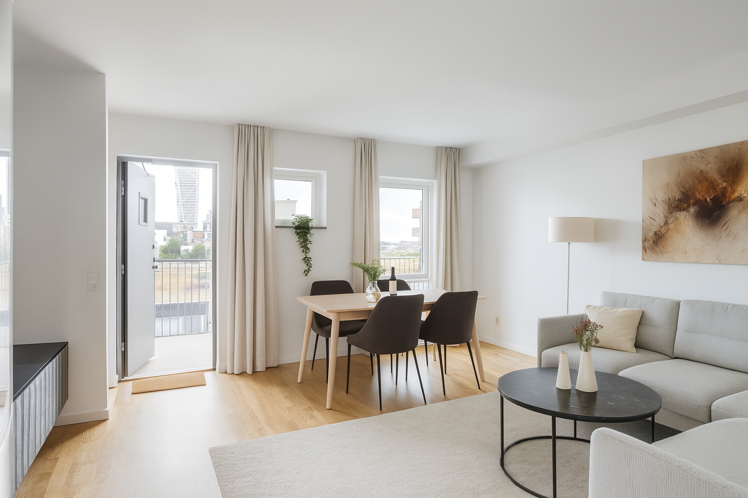 I Västra Hamnen bor du i en miljömärkt byggnad med havet som närmsta granne och city på bekvämt avstånd. i Bostadens absoluta närhet finns bra kommunikationer, caféer, strand, gym, livsmededelsbutiker, restauranger och fina promenadstråk.