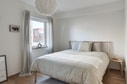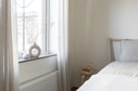 Rymligt sovrum med plats för dubbelsäng och sängbord. Ett fönster ger ett behagligt ljusinsläpp, och den stora garderobsväggen erbjuder utmärkta förvaringsmöjligheter.