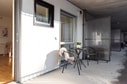 Gårdsvänd entrébalkong med plats för utemöbler, där du kan njuta av härlig eftermiddags- och kvällssol.