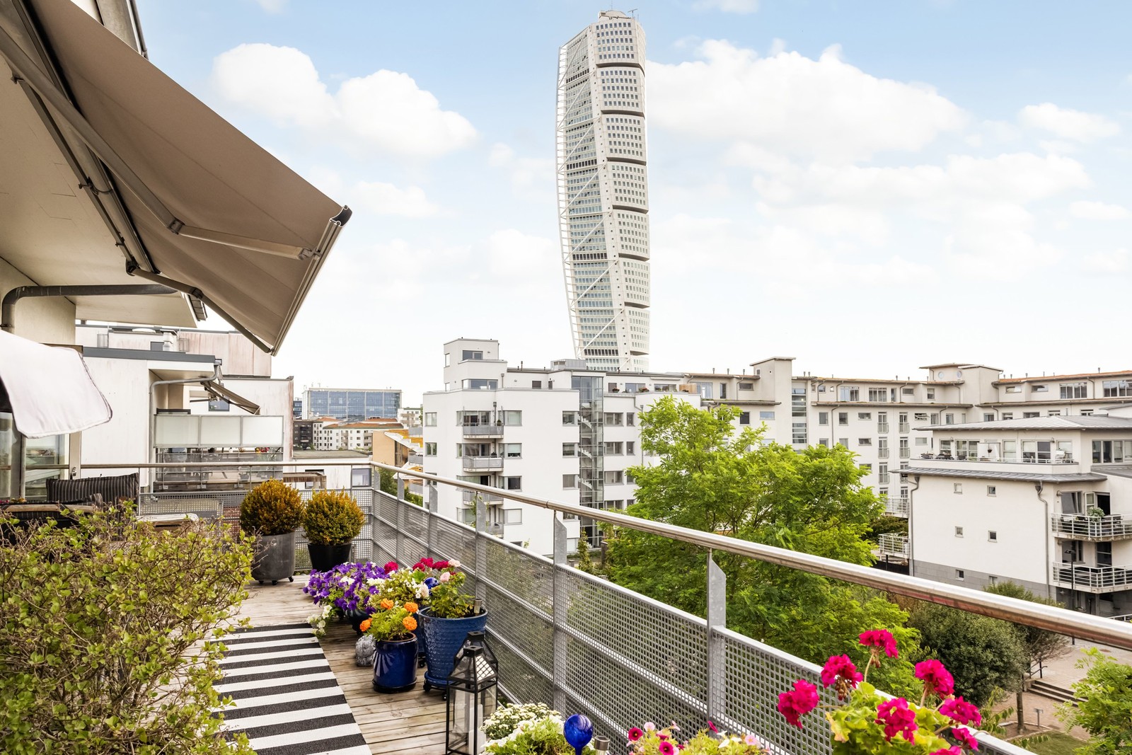Högst upp på Signalgatan 6 hittar du denna ljusa och luftiga bostadsrätt med 98 välplanerade kvadratmeter. Här bor du högt upp med magnifik utsikt över Västra Hamnen och Turning Torso, och med två soliga terrasser där du kan njuta av både morgonkaffe och ljumma kvällar. Den höga takhöjden på 2,70 meter och fönster i tre väderstreck skapar en imponerande rymd och ett flödande ljus. Lägenheten ligger tyst och ostört, samtidigt som havet och Scaniabadet är precis runt hörnet. Garageplats finns i föreningen – perfekt för det bekväma stadslivet.