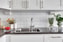 Det stilrena köket från Vedum har vita luckor med rostfria handtag och luckdämpare för en tyst och behaglig känsla. Diskmaskinen är integrerad bakom en snickerilucka, och utrustningen i köket håller hög standard: inbyggnadshäll från Husqvarna, rostfri ugn, kyl/frys i rostfritt samt fläkt/spiskåpa av modell Savoy. Spottar med dimmer i kök och hall ger ett snyggt och modernt ljusinsläpp.