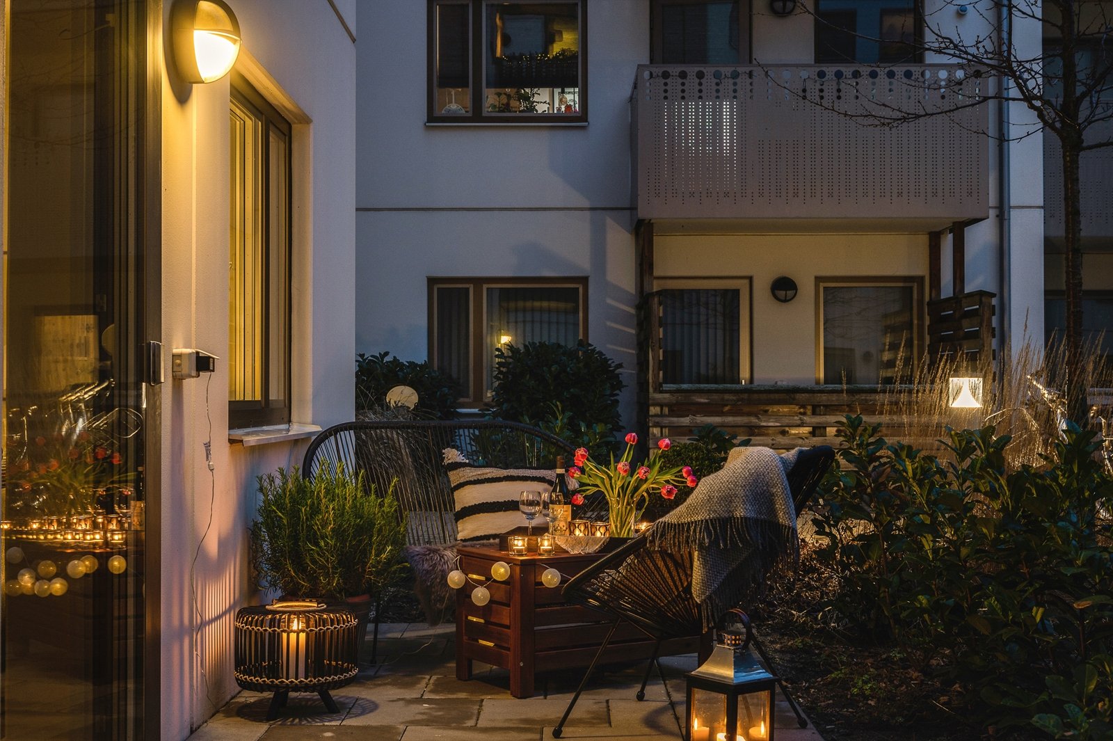 Här erbjuds en optimalt planerad bostad med öppen planlösning, luftiga ytor och egen uteplats. Lägg därtill en rymlig sovalkov med plats för dubbelsäng och flera garderober för bra förvaring.