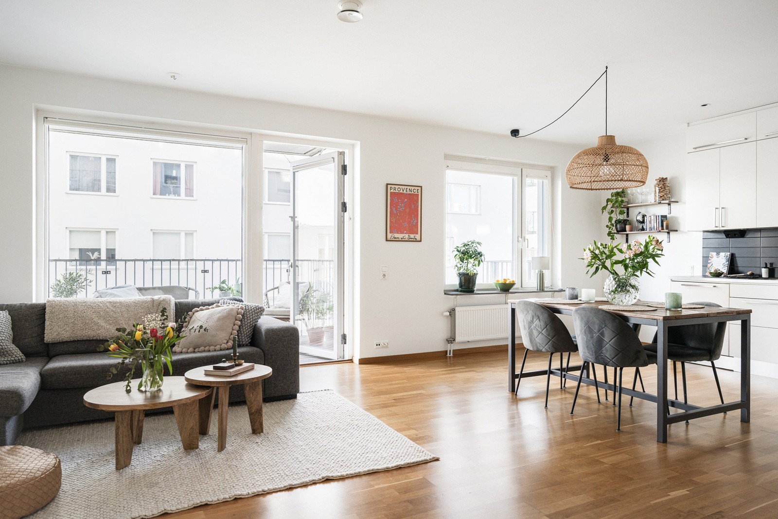 - Plisségarderiner i kök och vardagsrum