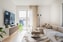 Vardagsrum med gott om plats för soffhörna framför stora fönsterpartier. Ljuset flödar in från två håll och skapar en luftig känsla. Härifrån nås även balkongen mot grönskande innergård – perfekt för loungemöbler och solstol under sommaren.