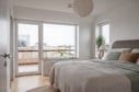 Det sista sovrummet ligger en suite med badrum och två separata walk-in-closets. Ljuset faller in via glaspartier från två håll och utsikten öppnar sig över Västra hamnen och Turning Torso. Läget känns privat och harmoniskt.